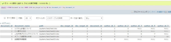 doc_targetテーブルは書類の作成者情報が入っています。author_id_5まであり、1レコードに5人までの作成者を登録できます。