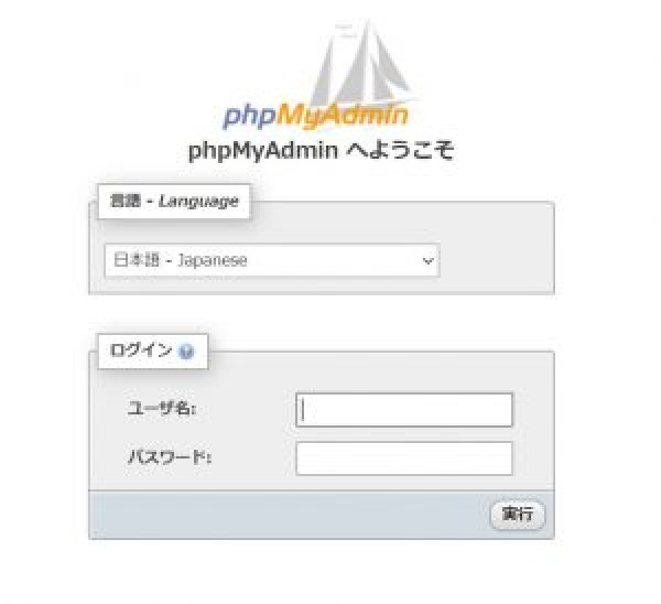 ブラウザから/phpmyadminにアクセスするとログイン画面が表示されます。