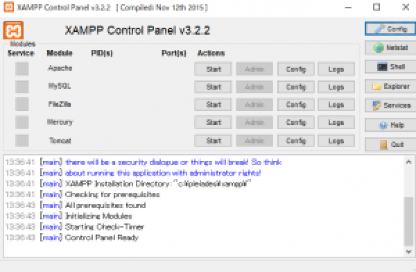 設置してからXAMPPを起動すると、無事にApacheが立ち上がります。