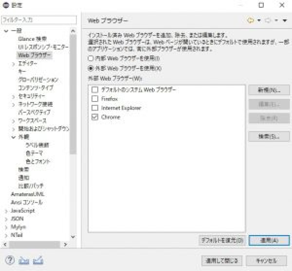特に何も指定しない場合はEclipseの内部ウェブブラウザが起動します。
