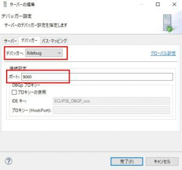 デバッガータブに移動し、デバッガーに「Xdebug」を選択します。ポートは9000番を指定します。