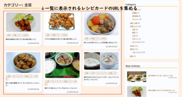 これらページに表示される、各カテゴリの記事のURLを取得します。