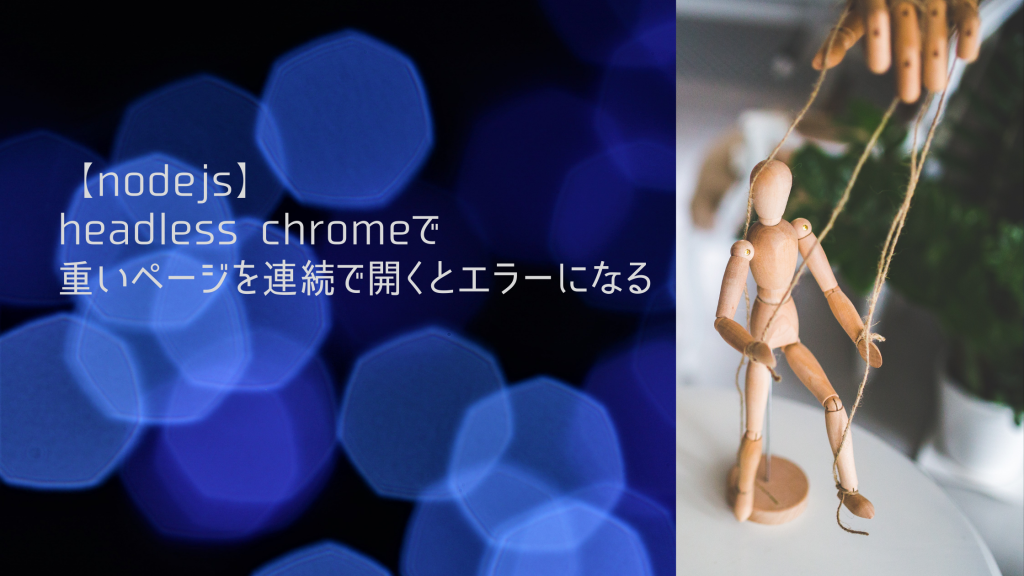headless chromeをpuppeteerで動かして色々やるときに、重いページを開いた後に諸々エラーが起きるようになった。