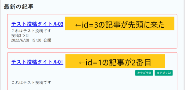 ID降順でソートしたいとき、このようなSQLになります。