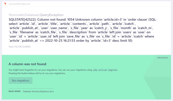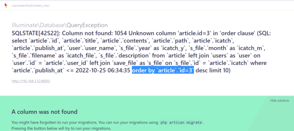 エラーが起きるLaravelクエリビルダのSQL