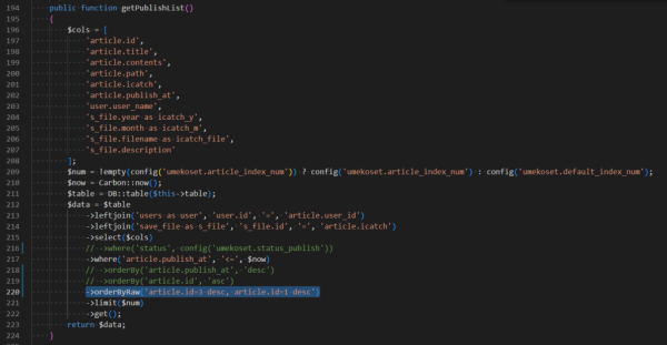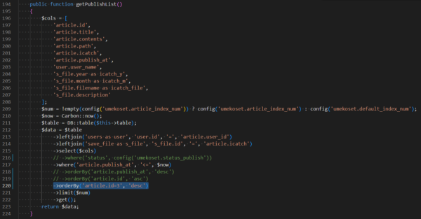 app/Models/Article.phpのgetPublishList