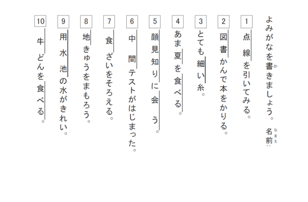 漢字カードの単語を元に、プリント用の短文を作成しました。